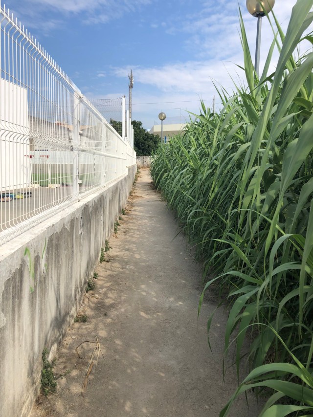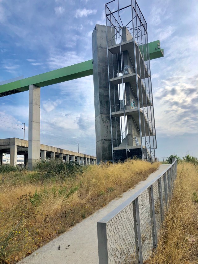 Coming into Vila Franca after crossing on another pedestrian bridge over the railroad track. And again, the down elevator did not work.