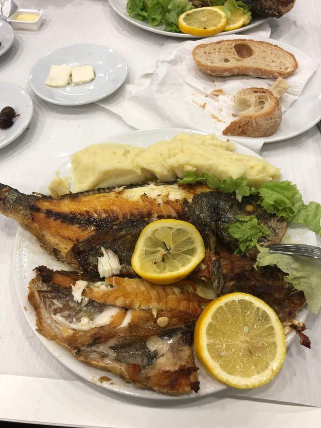 Doc and I went to a private restaurant for dinner that was reserved and paid for through the hostel. Our meals were locally caught fish, beautifully grilled, mashed potatoes, delicious all you can eat vegetable soup, salad, olives, bread, beer and desert, for €7.50 ($8.25).