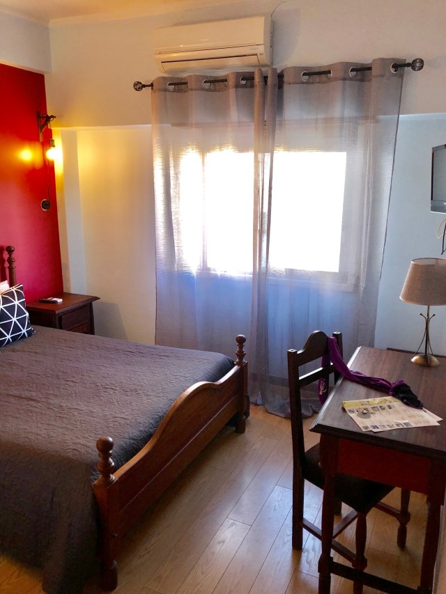 By the time I got out of the forest I was ready to stop, but Tomar was another six miles. Most of the way there was on the main highway, and on some side roads through some residential neighborhoods. I got to Tomar about 4:30 and found a room at the first hotel I came to, the Hotel Trovador. It turned out to be a nice place and was only £35 ($44), including breakfast. AND, it has air conditioning! After my usual chores and I walked to the store for my four liters of drinks for tomorrow. I then went to a nice Chinese restaurant and had a great meal with the chicken and shrimp that I’ve been wanting.
