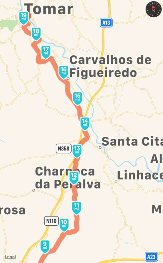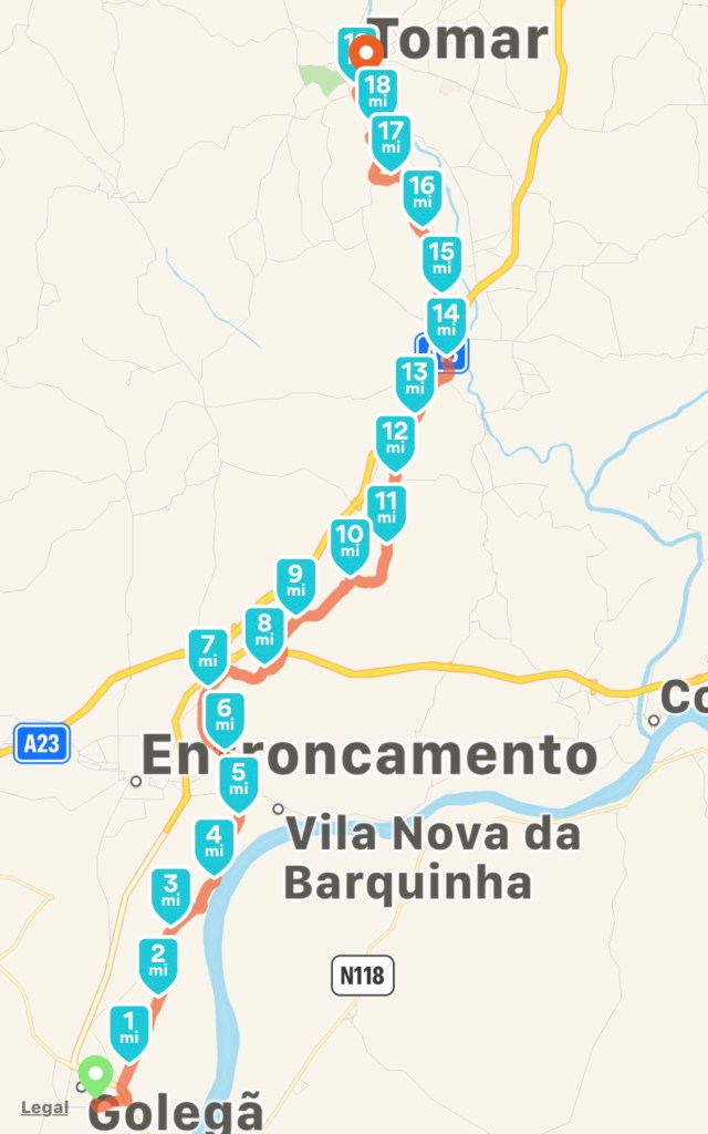 Golega to Tomar (19.39 miles/31.22 km)