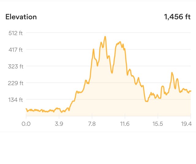 My elevation chart for the day. No, I did not make it up! And with the heat it was very challenging.
