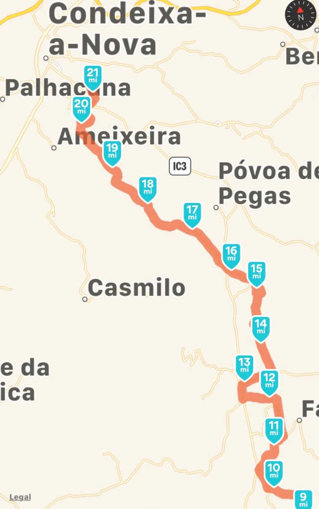 Tomorrow I will reach Coimbra, the third largest city in Portugal. It is only about eleven miles and I will have that same decision again as to whether to stay at Coimbra or go an extra six miles to the only other lodging for twenty miles. I will see how I feel tomorrow?