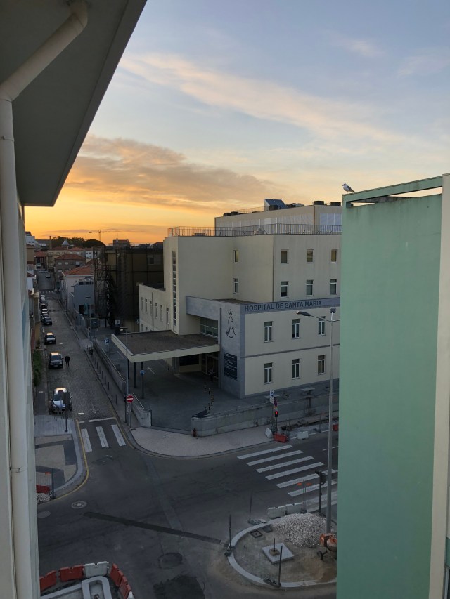 Looking at the sunrise from our apartment
