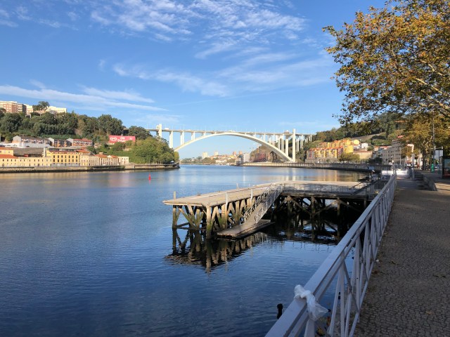 Looking back at the bridge to Porto