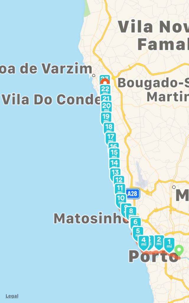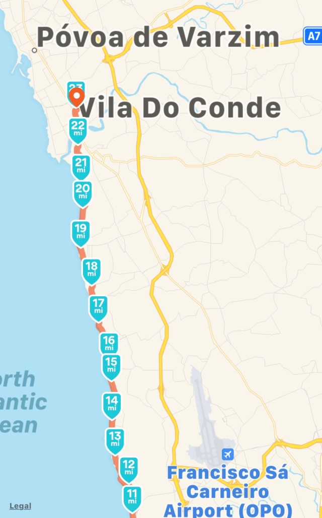 Porto to Vila do Conde (21.17 miles/34.09 km)