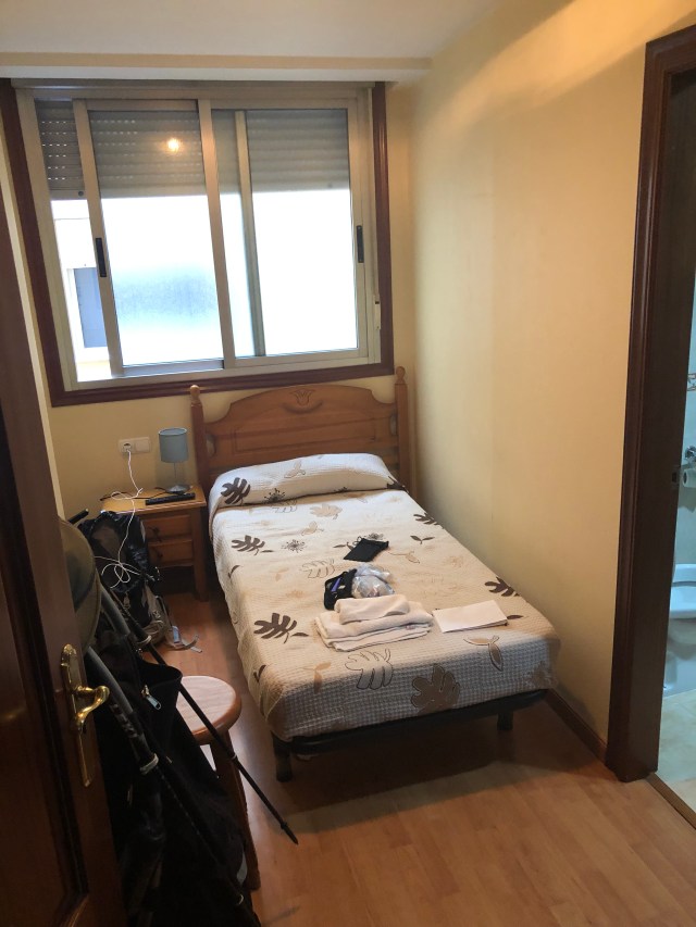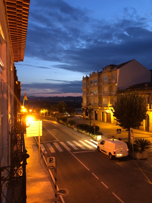 The weather was fairly cool, and with the flat terrain, I got into a good rhythm. I made it to Porriño before 5:00. I stopped at a business with a sign noting they stamp pilgrim passport and while there connected to their WiFi. A nice clerk saw me struggling with the phone and asked if she could help. I told her I was looking for a place to stay and she called a few hotels and pensions for me and found a room at the Hostal Louro. They had one private room with a private bath left and she reserved it for me. The room was small, but comfortable, and most of all, clean, and only €25 ($28).