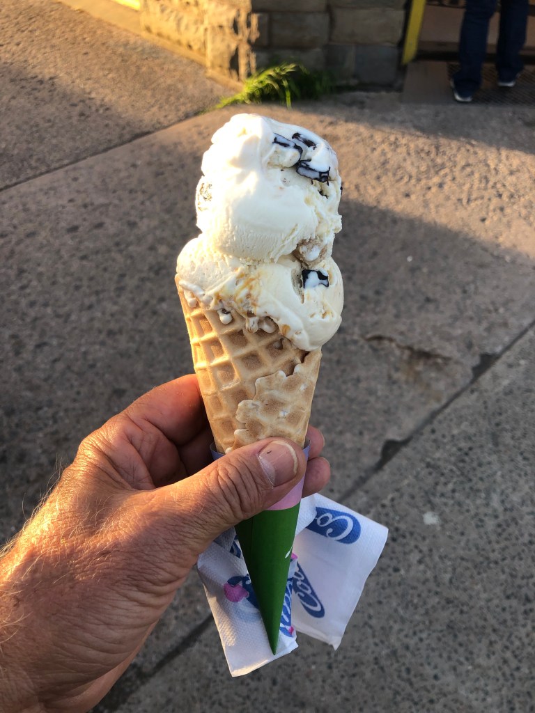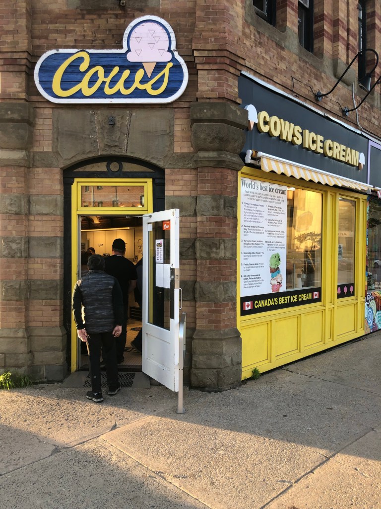 On my way back I passed an ice cream store, Cows, with a line of people stretching out onto the sidewalk. How could I pass it by? It’s got to be good, right? Well, asking the last person in line got me a definite yes! So two scoops of cookie dough and gooey something, on a regular, not a crummy USA type cone, but hardy cone, $7.19 Canadian, $5.55 US. Can’t beat that for a great ice cream at a great price!