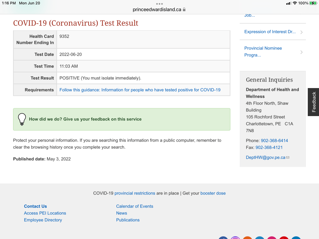 My plan was to try and get a certified Covid test through the PEI testing clinic today. I call at 8:00, when they opened, and they were already fully book for today. I did get a nice woman on the phone and told her my circumstances, and she put me on hold for quite a while and then came back and told me they made a place for me a 10:45. I was thankful that she understood my dilemma, but it could have been that she felt sorry because I was crying (joking but close) on the other end, and that might have swayed her.
